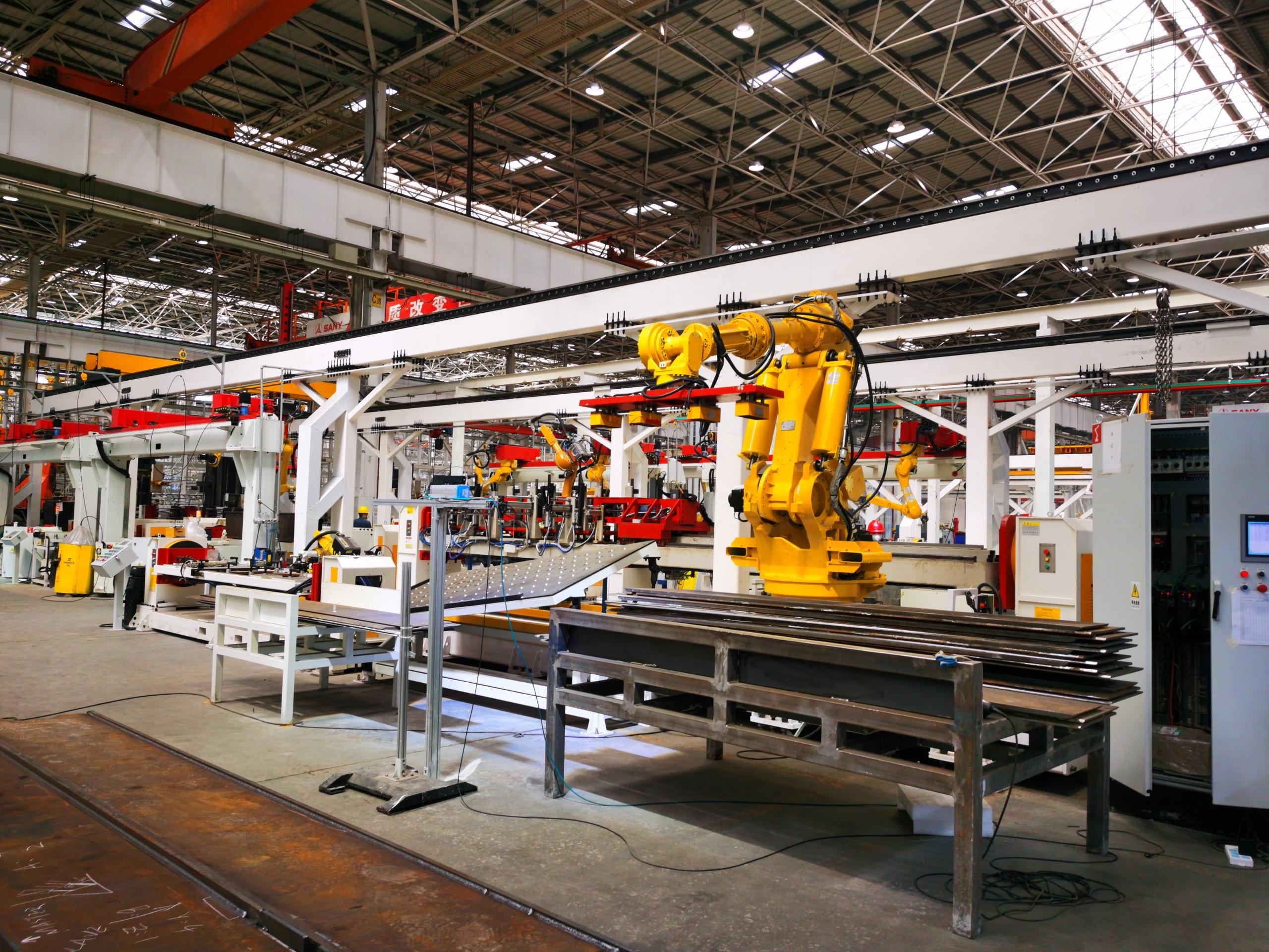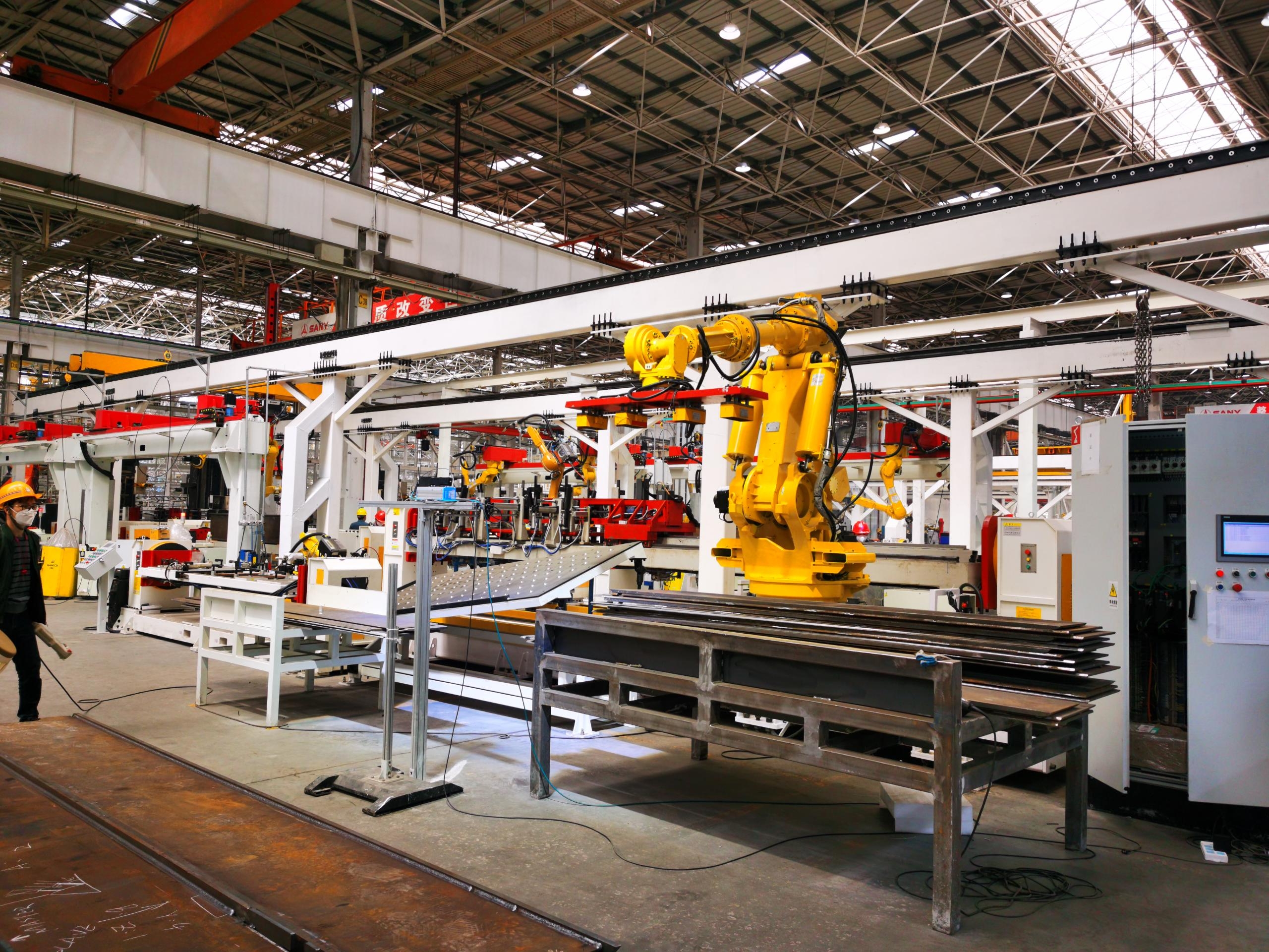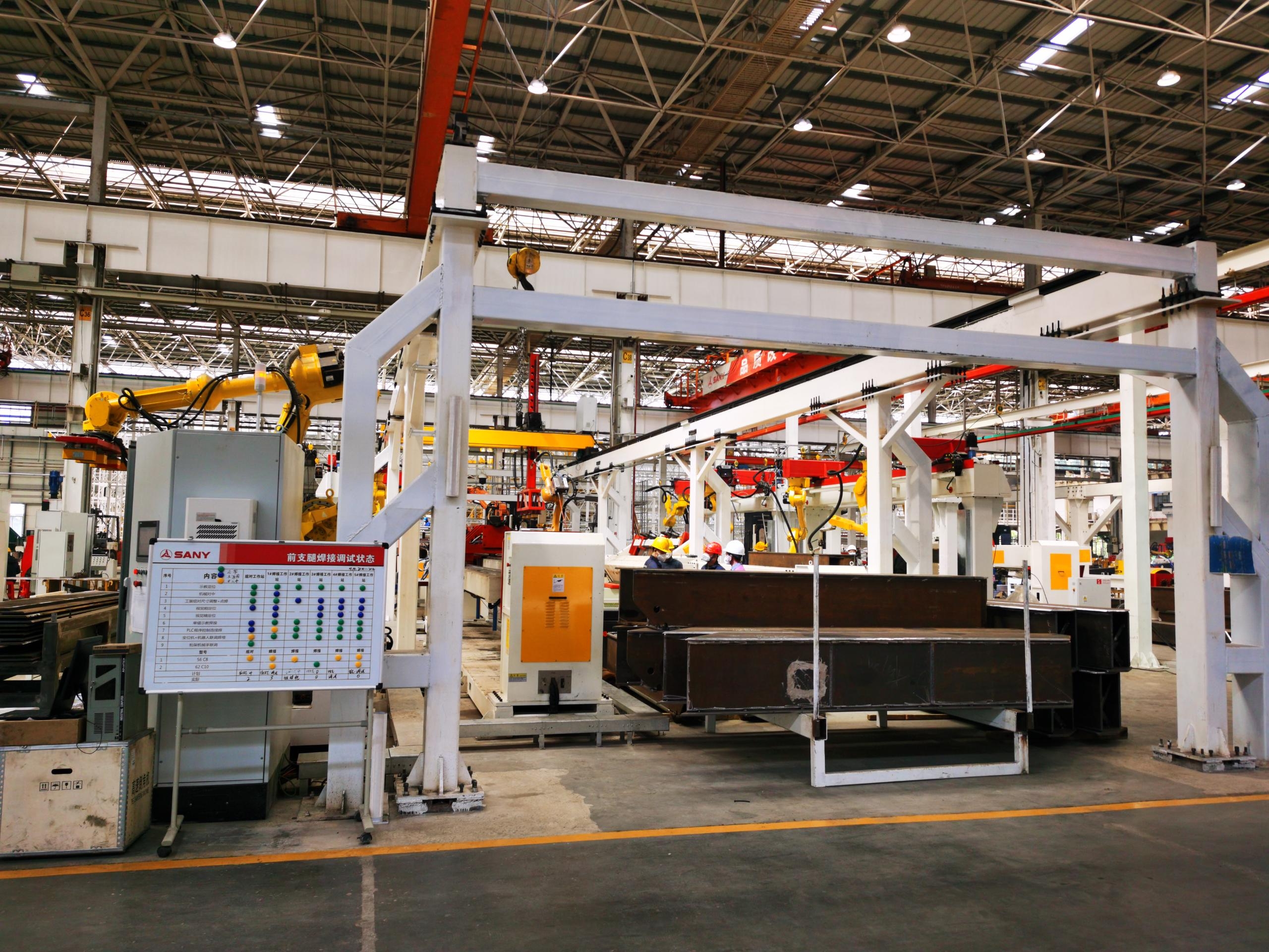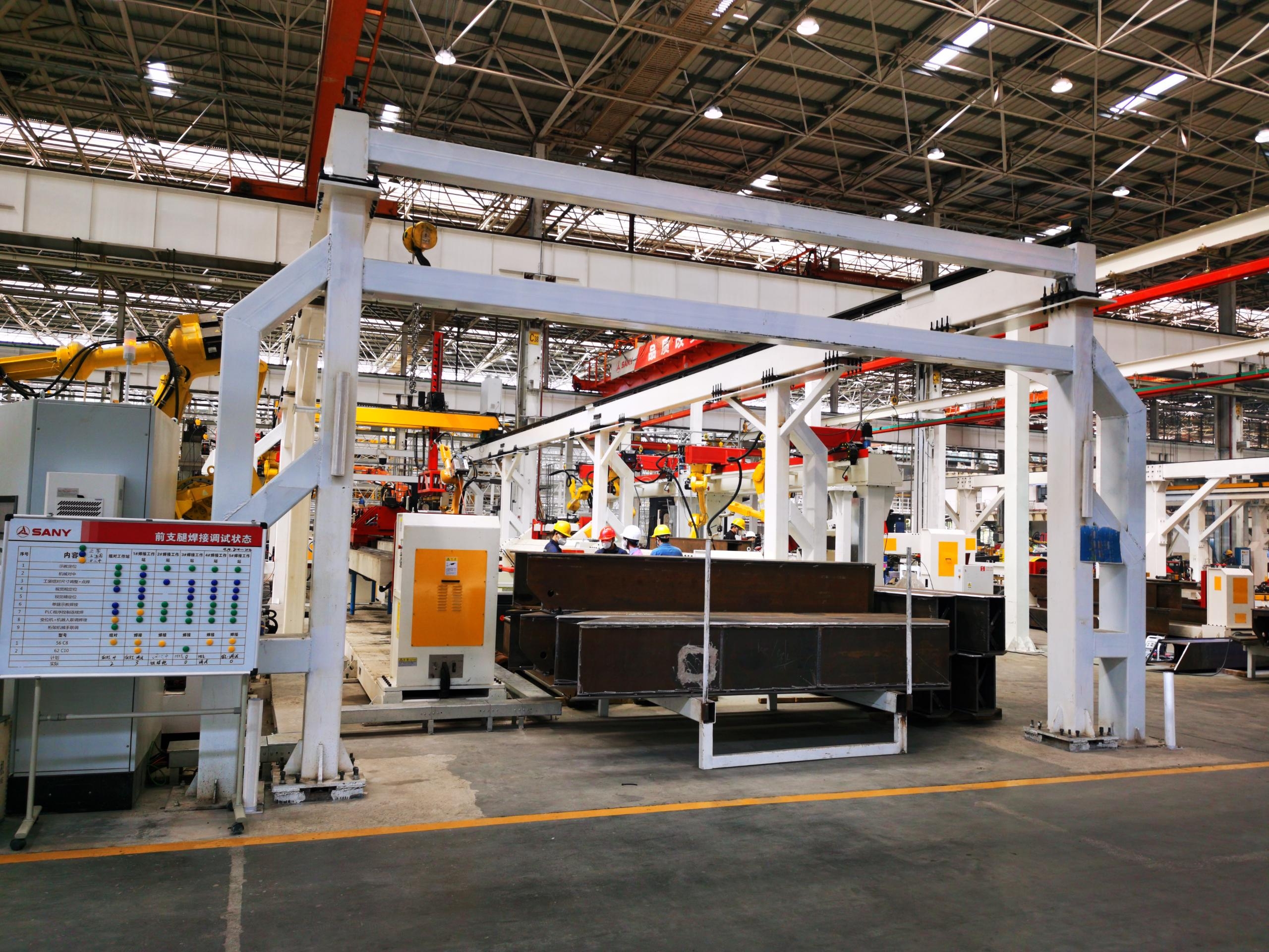 業內第一臺套大型泵送車輛前支腿全自動組對生,機器人搬運解決人工搬運工件較重問題,機器人多層多道焊接可節約人工,防止錯焊,漏焊,提升焊接熔深,保證焊接質量;同時產線在不停止狀態下滿足多種車型柔性切換