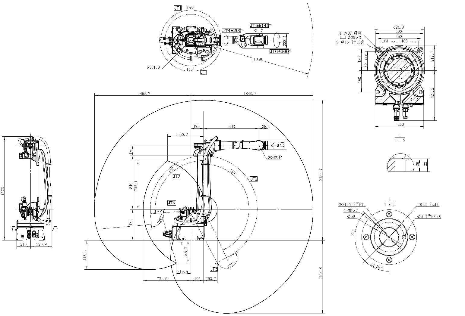 最大行程:±200° 最大速度:420°/s 最大扭矩:125N.m 慣性力矩:4.5kg.m2